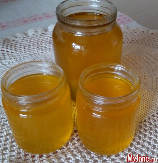 В результате вот такое янтарное ароматное топленое масло получилось. После остывания масло затвердеет, банки закрываем крышками. Топленое масло можно хранить как в холодильнике, так и при комнатной температуре, оно может храниться очень долго.