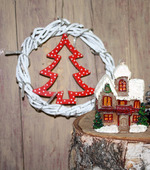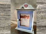 Вначале это была коробочка с прозрачной крышкой, из фанеры (не очень понимаю ее первоначальное назначение). Тогда я приклеила с двух сторон прямоугольные кусочки фанеры – получился низ и верх домика. И добавила фигурную деталь (уже не вспомню, готовая у меня была или вырезала).