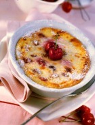 Затем окунуть форму в горячую воду, перевернуть и выложить пудинг на блюдо.