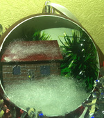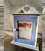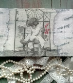 Посредине емкости (там небольшое углубление) декупаж. Сначала прокрасила это место белой краской-основой, затем верхний слой салфетки разровняла с помощью кисти, клея ПВА с водой. После высыхания- слой лака.