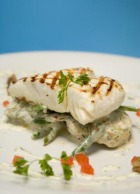 Морковь и коренья тщательно вымойте и очистите, накрошите кубиками. Филе трески нарежьте порциями, положите в порционные горшочки, присоедините овощи и заправьте растительным маслом. Посолите и добавьте несколько горошин перца, сварите до готовности. Готовую горчицу разведите рыбным бульоном и добавьте в рыбу с овощами. До кипения не доводите. Затем опустите лавровый лист, лимонный сок или разведенную лимонную кислоту. Сверху посыпьте рубленым укропом. На стол подать в горшочке.