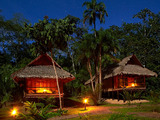 А этот коста-риканский курорт, спрятавшийся в самом сердце карибских джунглей, растянулся вдоль берегов расположенной севернее Таламанских гор реки Пакуаре. В этих удивительных местах обитает великое множество самых разнообразных диких животных: ягуаров, обезьян, ленивцев, пестрых пернатых и т. д. Да и размещение на данном курорте предусматривает максимум удобств для туристов: роскошные приподнятые бунгало оснащены эффектным соломенным покрытием, более того, в некоторых из них имеются еще и частные бассейны! Что же касается развлечений, то и их тут тоже немало: это и купания под водопадом, и каньонинг, и верховая езда, и рафтинг, и многое-многое другое! А влюбленным здесь всегда рады предложить романтический ужин при свечах, да не за простым столиком, а за установленным прямо на берегу реки или же высоко на навесе над изумительной красоты тропическим лесом!Inkaterra Reserva Amazonica (Перу)