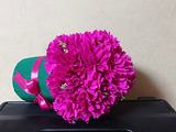 Собираем букет. По кругу коробочки аккуратно пробиваем пенопласт и вставляем цветочки. В первом ряду получилось 6 цветов.