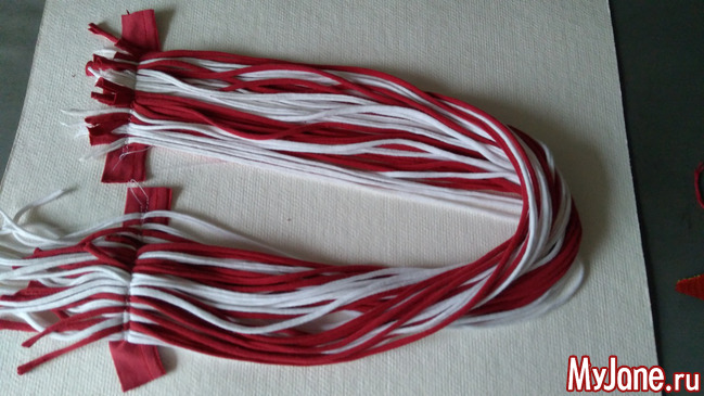 Итак, нам понадобилось две футболки, которые уже не носятся: красного и белого цвета;
