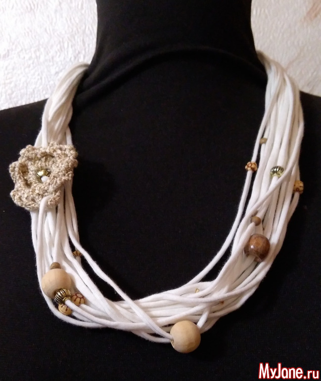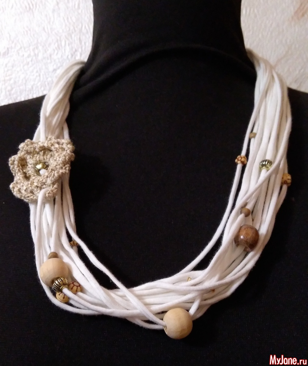 разные бусины с отверстием, в которое получится протянуть трикотажную трубочку.
