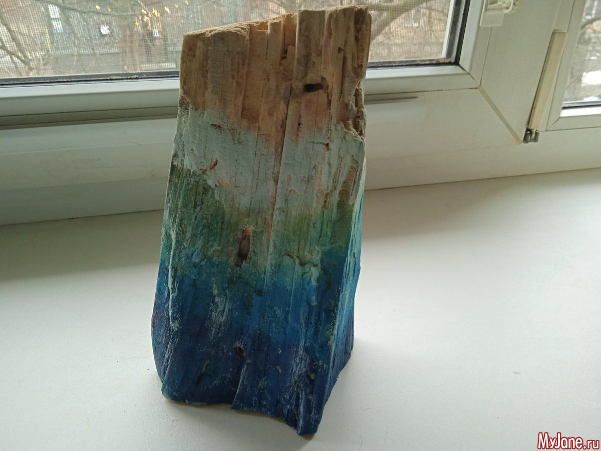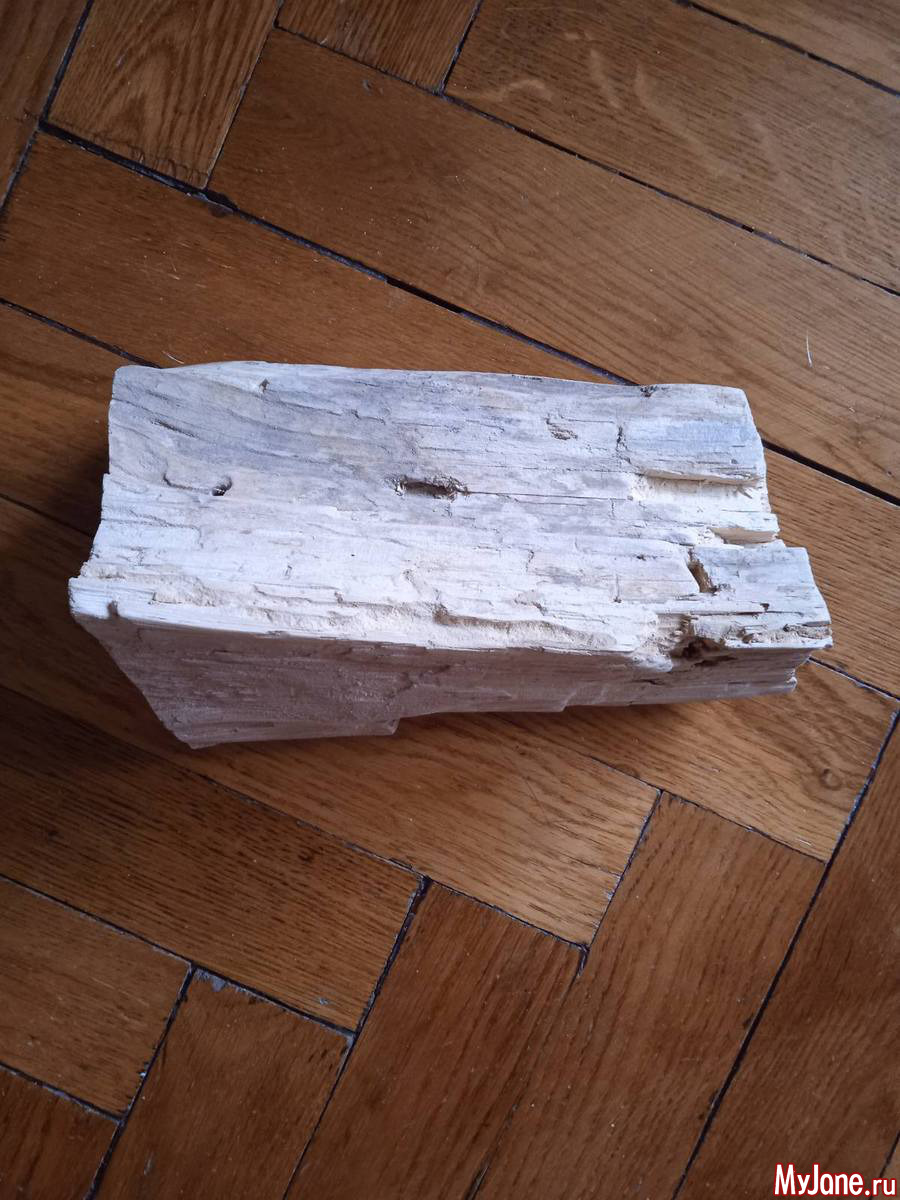 Основу брала буквально с земли – куски бревен на берегу озера, в лесу, парке. Идеально такие вещи хорошо находить на берегу моря, конечно. Очищала от грязи, промывала и довольно долго высушивала. Затем на несколько дней выносила на холод - дерево должно «закалиться».