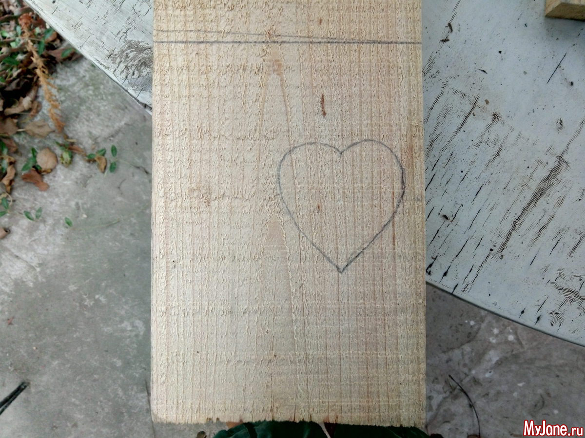 Настроенная на нежные чувства, приступила к созданию интерьерных сердечек. Я сделаю две вещи из одного куска доски.