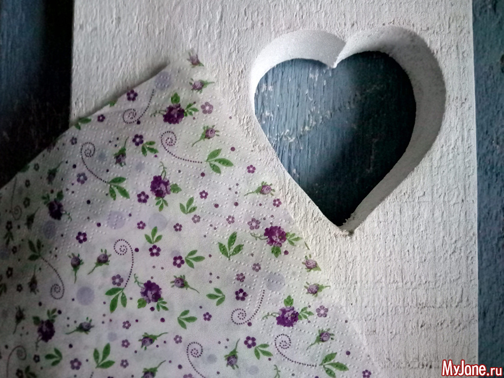 Это даст возможность менять изображение на сердечке, переворачивая его то одной, то другой стороной. Последние штрихи – легкая дорисовка краской краёв наклеенной салфетки, покрытие поверхности лаком, закрепление всех деталей.