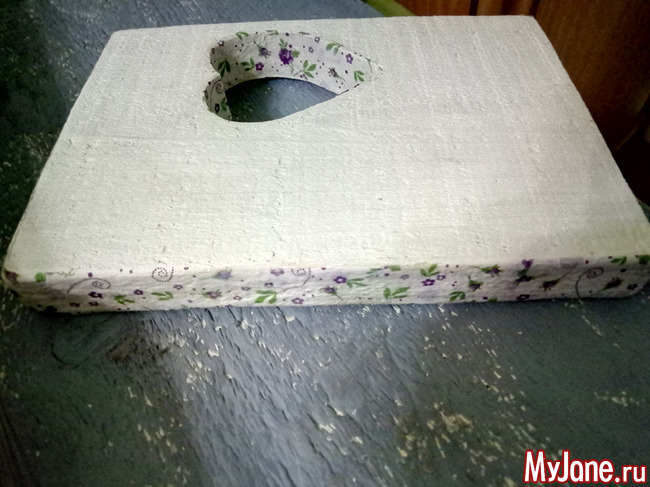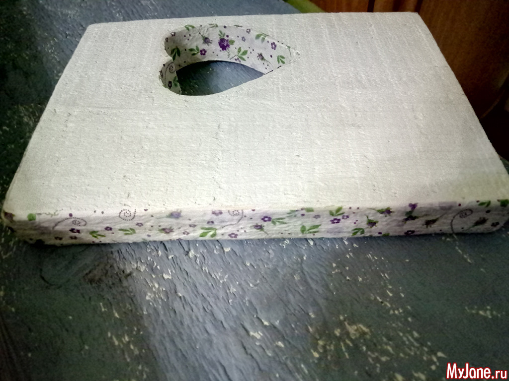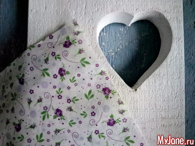 Торцы и середину сердечка декорирую салфеткой с помощью клея ПВА.