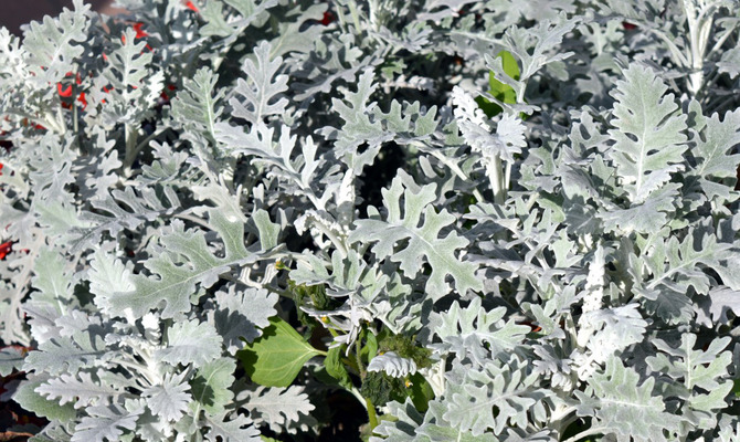 Цинерарию серебристую на больших участках парков и садов используют для создания всевозможных узоров, сочетая Цинерарию с оранжевыми бархатцами или другими яркими невысокими цветами.