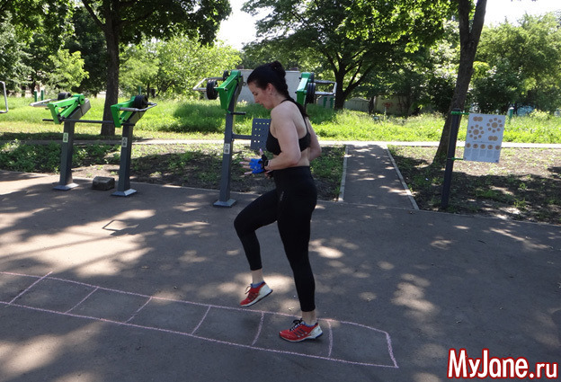 Отличное упражнение, чтобы проработать ягодичные мышцы и четырехглавую мышцу бедра (квадрицепс). В нашем случае для этих целей подошла ступень в спортивном уголке. Как вариант, подойдет и лавка. С новым подходом не забываем менять ногу.Желательно, чтобы высота ступени (опоры) была такой, при которой колено находится немного выше бедра.