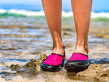 И, конечно же, выбор коралловых тапочек должен быть обусловлен местом, в котором в них планируется отдыхать – очень важно постараться учитывать характер поверхности как морского дна, так и самого пляжа! Для перемещения по песчаным пляжам, усыпанным легкой и не слишком крупной галькой, можно смело приобретать простенькие аквашузы, оснащенные тонкой подошвой. Если же отдыхать планируется на рифовом берегу с кораллами и острой галькой, подошва должна быть не только утолщенной, но еще и оснащенной специальной защитой по бокам. Отдых на скалах и камнях подразумевает приобретение обуви с противоскользящей резиновой подошвой (как правило, такая подошва оснащена особыми шипами или рифлением) и наличием прочных креплений на ноге, а для дайвинга необходимо выбирать исключительно профессиональную акваобувь!