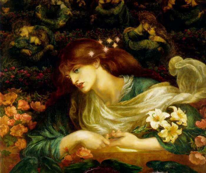 Что интересно, в 1850-ые годы Элизабет вряд ли назвали бы красивой. Она считалась слишком худой (в те годы изящное телосложение не ценилось), а рыжие волосы, как писала одна журналистка того времени, были «социальным самоубийством». Но, тем не менее, художники смогли передать ее красоту, картины имели успех, а она, как модель, стала очень востребованной. Ее можно увидеть на картинах Холмана Ханта, в 1850 году девушка впервые позировала для Россетти, а после того, как она стала «Офелией» Милле, Лиззи уже сама была знаменитостью. Она стала любовницей Данте Габриэля, и тот, ревнуя ее к другим, запрещал позировать для кого-то еще.