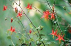 Очень интересно их строение: между чашелистиками расположены узенькие воронковидные лепестки, оканчивающиеся полыми шпорцами. Если их наполнить водой, они её легко удержат. Потому и называется цветок аквилегия: "аква" - на латыни вода, "лего" - собирать. Такое причудливое строение придаёт цветкам особую экзотичность. А за способность собирать в цветки воду аквилегию у нас в народе издавна так и прозвали – водосбор.