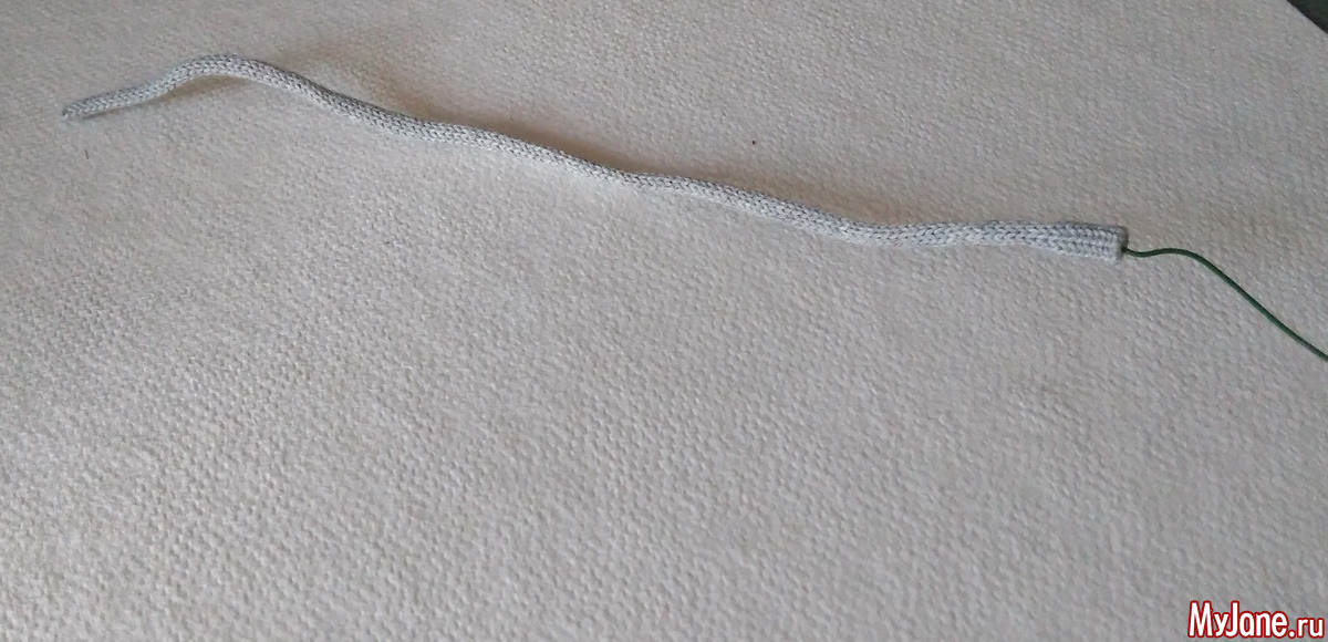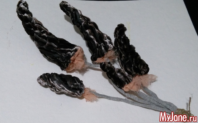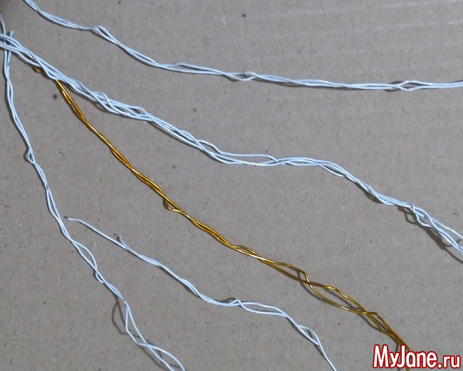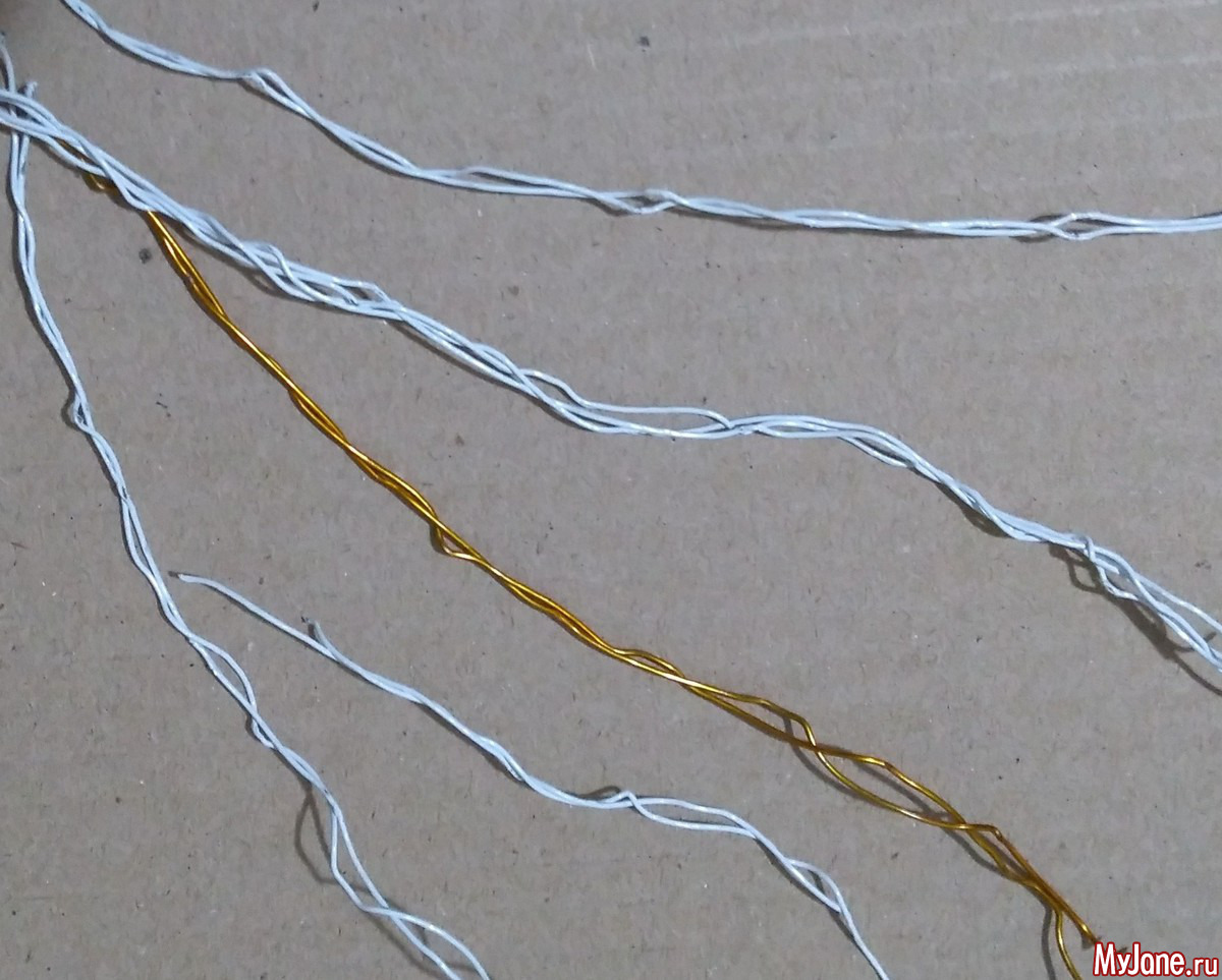 В шнурок вставляем проволоку, ножки грибов практически готовы.