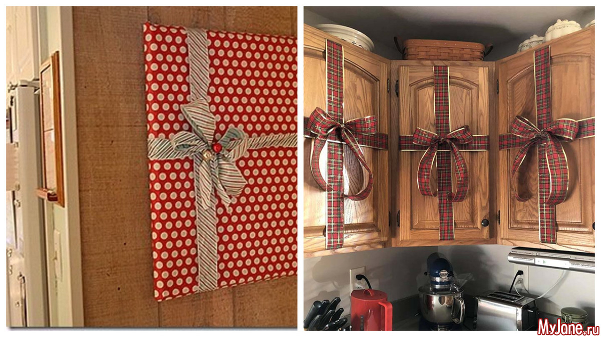 Забавная и оригинальная идея - просто возьмите произведения искусства среднего и большого размера или рамы для картин, зеркала или даже шкафчики, висящие на стенах, и заверните их, как подарки. Ты можешь в это поверить? На твоих стенах висят рождественские подарки!