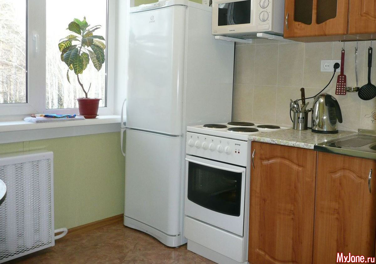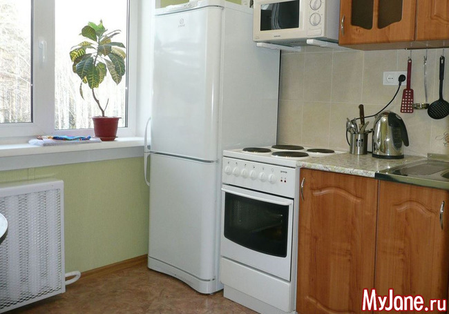 Если кухня слишком маленькая, и никаких других вариантов попросту нет, в самом крайнем случае можно поставить холодильник и неподалеку от батареи, правда, в данном случае необходимо выполнить целый ряд условий.Во-первых, холодильник ни в коем случае не следует ставить таким образом, чтобы он касался своей задней частью батареи – допускается только незначительное соприкосновение боковой частью, да и то в идеале лишь наполовину.