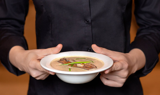 При подаче к столу можно посыпать измельчённой зеленью укропа или зелёным луком.