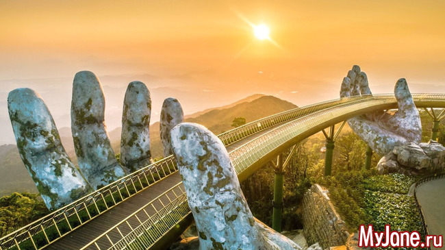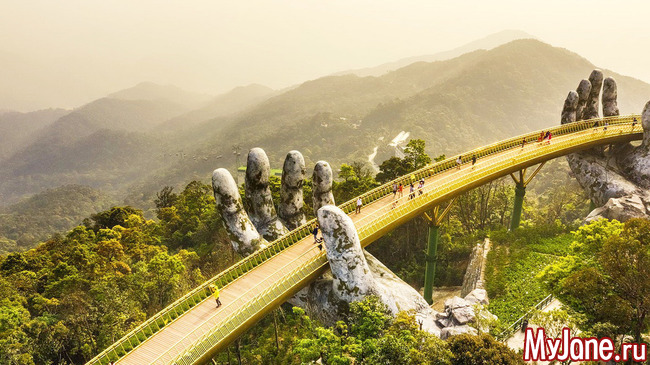 Вьетнам вкладывает много средств в развитие туризма, в поддержание старинных построек и создание новых интересных архитектурных решений. Среди последних выделяется Голден Бридж. Свое название он получил за счет золотого покрытия. Этот мост держится на семи опорах, две из которых выполнены в виде рук. За невероятный вид его прозвали «прикосновением к небу».