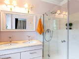 Помещение ванной выглядит более целостным, если в помещении есть стеклянные элементы - двери в душевой, вставки из стекла в шкафу или другой мебели.