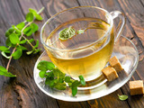 Нарезать апельсин тонкими ломтиками, размять. Добавить две веточки мяты, столовую ложку черного чая. Залить кипятком, настоять. Охладить.