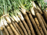 Листья сразу же обрезают, корнеплоды обсушивают, так как влажные они не хранятся. Затем их плотно устанавливают в ящики в вертикальном положении и присыпают влажным песком. Поврежденные корни либо сразу используют в пищу, либо выбрасывают.