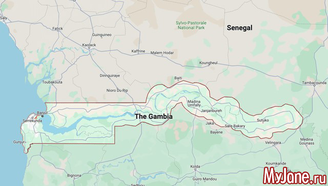 Гамбия — небольшая страна на западном побережье Африки, и она уникальна тем, что почти полностью окружена Сенегалом, за исключением западной береговой линии вдоль Атлантического океана. Гамбия, самая маленькая страна на материковой части Африки, по форме не похожая ни на одну другую страну мира. Она длинная и узкая, всего 45 км в поперечнике в самых широких местах.