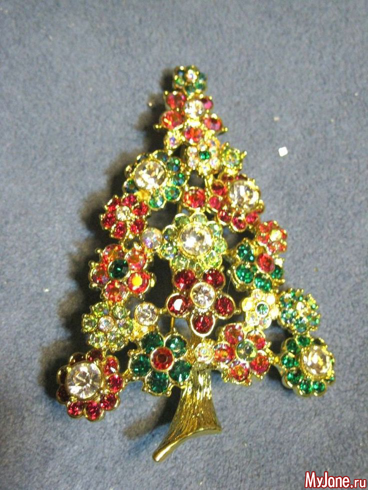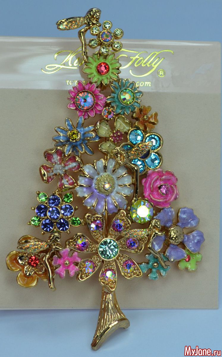 Особой популярностью у модниц всегда пользовались елочки некогда самого известного бренда американской бижутерии Kirks Folly – творения сестер Киркс всегда были вне конкуренции. Вот, например, елочка из переливающихся цветочков – чудо как хороша!