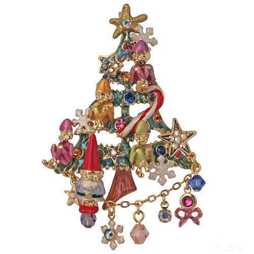 Самым главным атрибутом празднования Нового года, конечно же, является щедро украшенная новогодняя елка, причем как натуральная, так и искусственная. А для любителей особого новогоднего «шика» предприимчивые дизайнеры подготовили стильные металлические елки с камушками и эффектные елочки из эмали!Особой популярностью у модниц всегда пользовались елочки некогда самого известного бренда американской бижутерии Kirks Folly – творения сестер Киркс всегда были вне конкуренции. Вот, например, елочка из переливающихся цветочков – чудо как хороша!