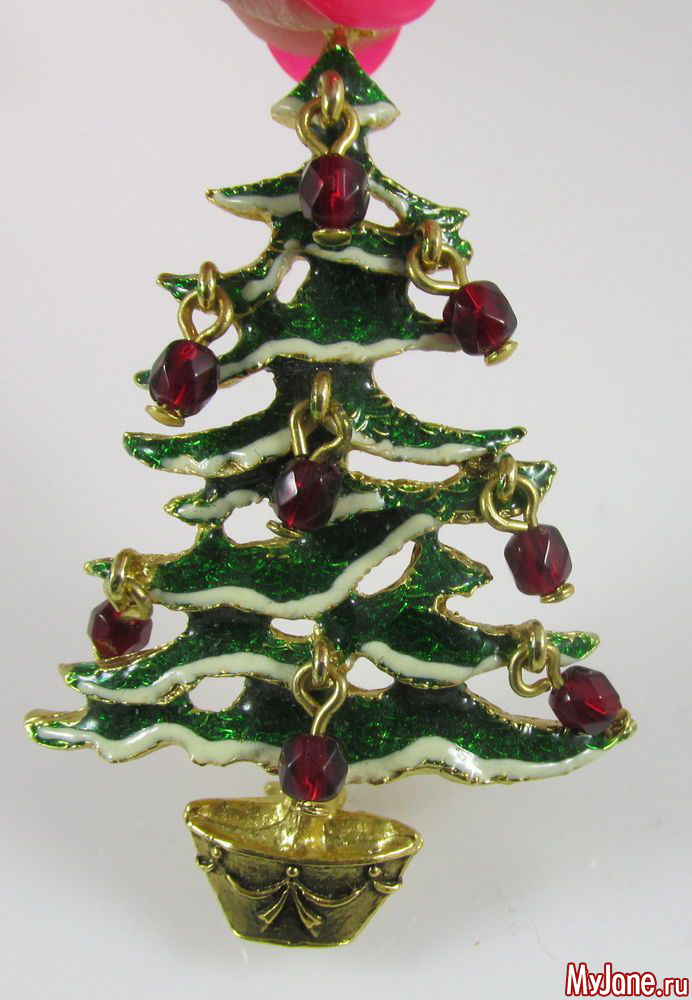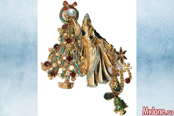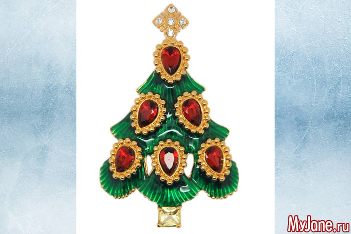 Не менее прекрасными елочками может похвастаться и ювелирный бренд Monet – когда-то его создатели мечтали конкурировать с самим Генри Фордом, но нежданно-негаданно грянувшая Великая депрессия вынудила их пересмотреть свои планы: предприимчивые братья всерьез занялись производством быстро завоевавшей любовь американок бижутерии на любой вкус, и не зря! Есть у них и трогательные, совершенно очаровательные вещицы, чем-то напоминающие детские игрушки, например, изготовленная в 1990 году брошь «Рождественская елка с изумрудами и рубинами». Подчеркнутая рубиново-красными стразами ярко-зеленая эмаль смотрится на редкость эффектно!