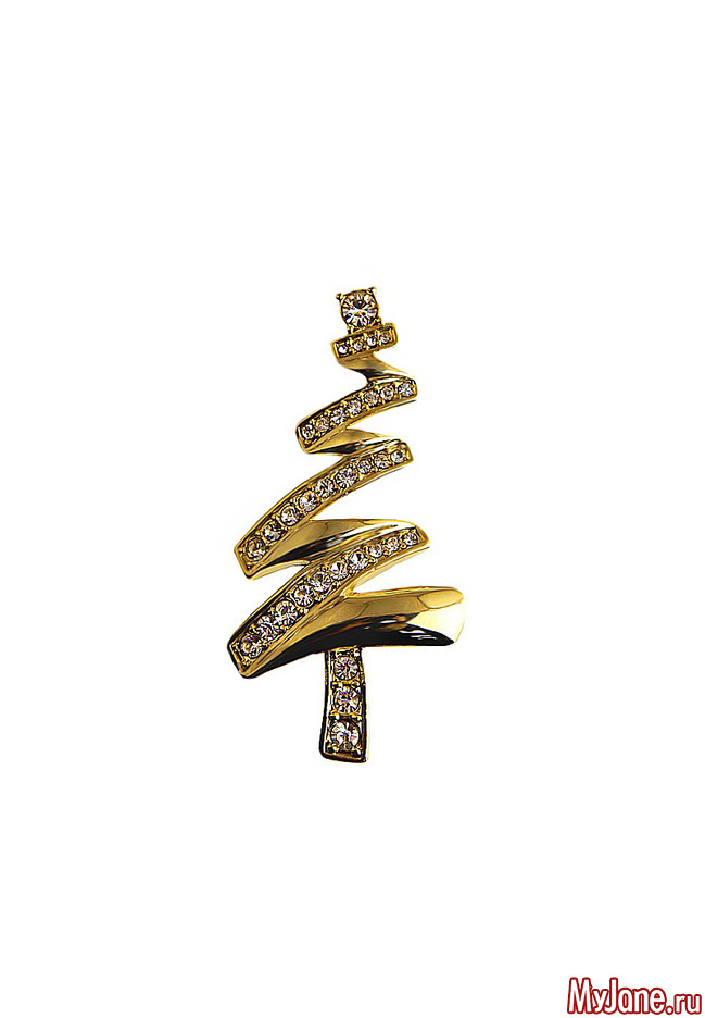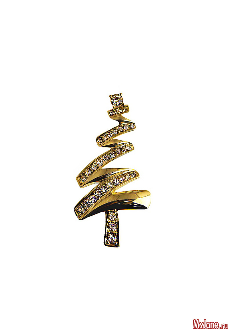 А изготовленная из бижутерного сплава позолоченная брошь «Кристальная елочка» от Monet поражает своей лаконичностью и одновременно изысканностью.