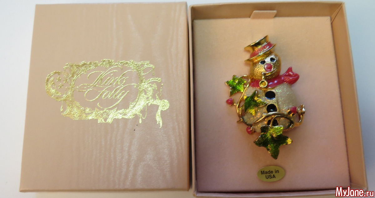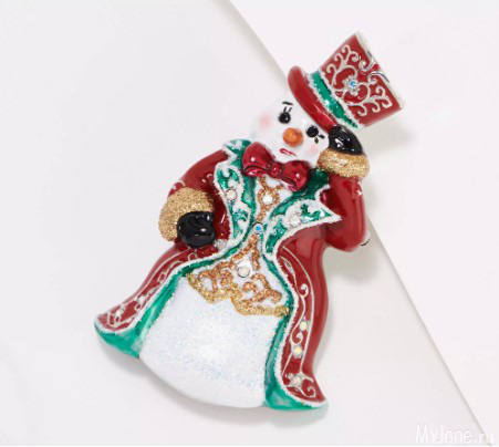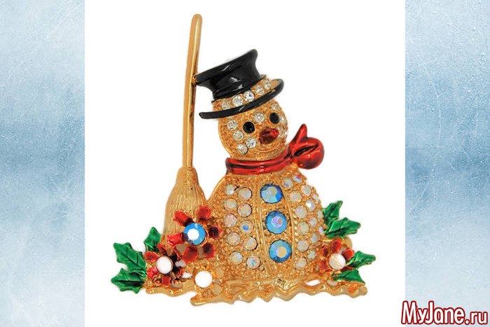 Нашла чем порадовать любительниц новогодних праздников и созданная в 1960 году американская компания Fitz and Floyd, достаточно широко известная как производитель керамической посуды, а также авторских сувениров для дома. Однако время от времени данная компания предлагала вниманию покупателей и очень эффектные и выразительные бижутерные коллекции, в которых нашлось место и вот такому великолепному снеговику. Кстати, стоил этот снеговик очень дорого, да и сейчас, если вдруг кто-то решит продать такого винтажного красавца, цена на него тоже вряд ли окажется демократичной!