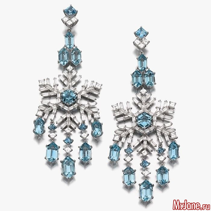 А уж как хороши другие «ледяные» серьги с аквамаринами и бриллиантами, на сей раз от Francesco Rosa – просто не передать словами! Налюбоваться ими невозможно! И если бы эти милые снежинки не были баснословно дорогими, наверняка ими с удовольствием бы обзавелась как минимум каждая вторая или третья представительница прекрасного пола!
