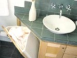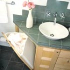 · Можно сделать встроенный шкаф под раковиной, там удобно хранить чистящие и моющие средства, а также щетки и губки.