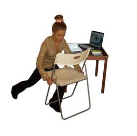 Наверняка в Вашем офисе найдется легкий пластиковый стул или кресло. И если Вы поклонник офисного фитнеса, то применение данного предмета интерьера как нельзя кстати можно адаптировать для выполнения силового упражнения в перерыве. Однако помните, «обычное» офисное кресло не подойдет, так как оно весьма тяжёлое и потребует максимального напряжения для фиксации исходного положения.