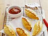 Оставшееся яйцо смешайте с молоком и смажьте края квадратиков. Сложите тесто конвертиками, смажьте яично-молочной смесью. Противень застелите пергаментом, уложите конвертики и выпекайте в разогретой до 200 градусов духовке 15 минут.
