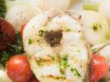Рыбу отваривают в подсоленной воде, перекладывают на тарелку и гарнируют мелким отварным картофелем, который заливают соусом, приготовленным так: сливочное масло разогревают, добавляют мелко нарезанную зелень петрушки, сок лимона, белое натуральное вино и рыбный бульон.