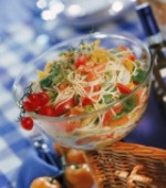 ...Если вы хотите добавить в салат сырой репчатый лук, мелко накрошите его, положите в дуршлаг и обдайте кипятком, он потеряет горечь и будет гораздо вкуснее.