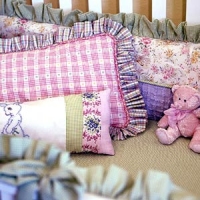 Они служат не только в декоративных целях. Когда малыш начнет сидеть, их можно подкладывать ему под спинку. Вышивка или забавные картинки только приветствуются! Но помните, что подушки нельзя оставлять в детской кроватке, когда малыш спит.