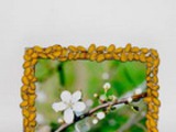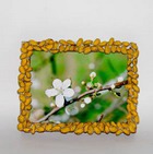 Чтобы рамка приобрела законченный вид, нанесите коричневую краску особым способом - «сухой кистью». Делается это так: немного краски положите на палитру или картон. Возьмите ее чуть-чуть, на самый кончик сухой кисти, и размажьте по бумаге или газете. Когда на кисти почти не останется краски, проведите ею по «рёбрам» скорлупок. У вас получится красивый налет коричневой краски на выступающих поверхностях фисташковой скорлупы.