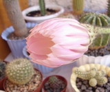 Echinopsis hybr. – представители великого множества гибридных эхинопсисов, выведенных в различных питомниках при скрещивании с близкородственными лобивиями и трихоцереусами, с самой разнообразной гаммой по окраске цветков. У этих представителей очень непрочные генетические качества, поэтому при семенном размножении происходит расщепление признаков. И если хочется заполучить какую-то форму, то нужно взять детку от уже цветущего понравившегося гибридного растения.