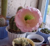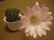 Чаще всего на наших подоконниках встречается Echinopsis eyriesii, но не в чистом виде, потому что за годы культивирования получено множество его гибридных форм. Эти гибриды имеют разные по длине колючки и чаще всего цветут белыми или нежно-розовыми цветками (grandiflora), иногда с темно-розовой полосой по центру лепестка. Цветки распускаются вечером и увядают уже на следующий день, но иногда держатся и до 2 суток. Образует боковые отростки – детки, которые можно использовать для размножения. Эти эхинопсисы относятся к равнинным кактусам и предпочитают достаточно богатую почву, регулярные поливы и ровные условия содержания без резких изменений.