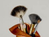 Затем на сухую кисть возьмите немного красной краски, слегка касаясь поверхности, тонируйте все выпуклые места карандашницы. Особое внимание уделите краям, как бы вытирая о них кисть.