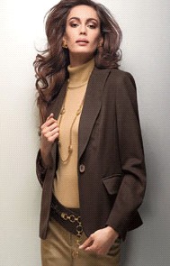 Второй вариант блейзера правильной формы с одной большой пуговицей. Вы будете выглядеть элегантно, если под блейзер наденете тонкий свитер, гольф или красивую блузку.