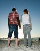 Оля сидела на пляже рядом с Мишей и гладила его по руке: