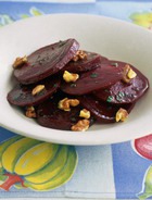 Свекольную ботву перебрать, промыть, нарезать и варить в подсоленной воде 7-10 минут. Вынуть шумовкой, слегка размять деревянной ложкой и залить заправкой, которую приготовить следующим образом: растолочь чеснок и смешать его с растительным маслом. Посыпать салат мелко нарезанной зеленью петрушки и укропа, сбрызнуть лимонным соком и посыпать, по желанию, измельченными грецкими орехами.