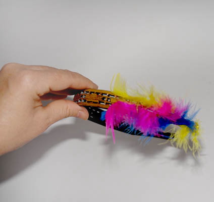 Затем перышки следует приклеивать, располагая немного в разные стороны.