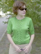 Для скосов рукава: прибавить по 1 петле с обеих сторон 9 раз в каждом 4–м ряду и 4 раза в каждом 2–м ряду. Для оката рукава: в каждом 2-м ряду убавить 1 раз 6 п., 1 раз 4 п., 15 раз по 2 п., 1 раз 4 п. и 1 раз 6 п., оставшиеся петли закрыть прямо.