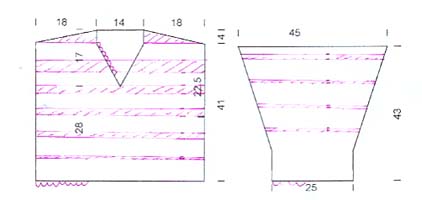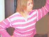 Перед вязать таким же полосатым узором, как спинка, до высоты 28 см. Затем правую и левую половинки вязать отдельно, убавляя для горловины в каждом ряду по одной клетке. Ширина горловины - 14 см, нижняя часть уголком, верхняя – вертикальная. Плечевые скосы связать, как на спинке.