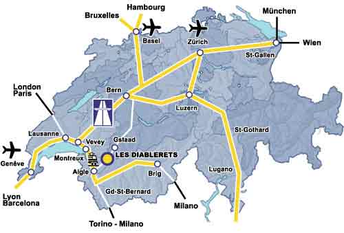Добраться до поселка Ле Дьяблере своим ходом, если у вас вдруг не заказан групповой или индивидуальный трансфер, не очень сложно, потому что одним из веских преимуществ этого курорта является его удобное по швейцарским меркам расположение всего в 120 км от аэропорта Женевы.